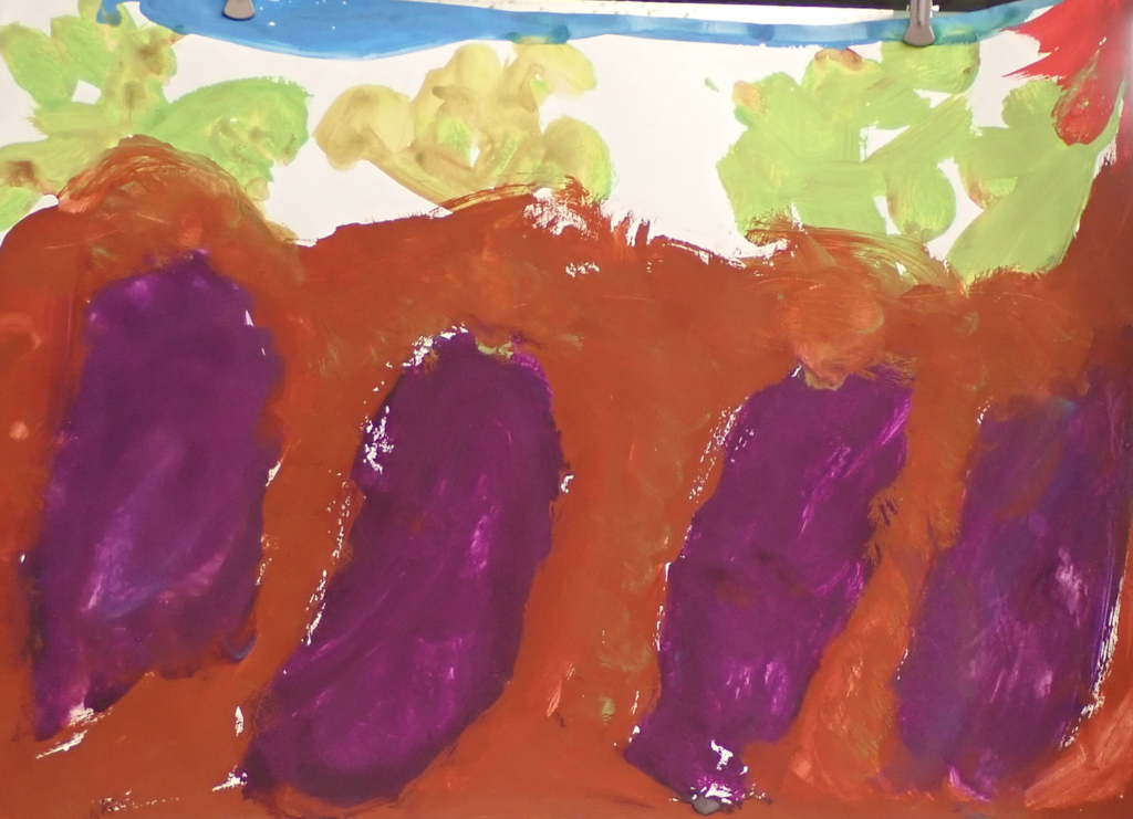 10月末、キミドリさんとキイロさんは、千葉県外房・東浪見の畠へお芋掘りに出かけました。子どもたちは自分の手で掘り出したお芋を大切に幼稚園へ持ち帰り、家に持ち帰る分と、幼稚園でみんなと食べる分に分けます。