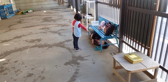 満3歳児のアオさんは、いま、かくれんぼに夢中です。ベンチの下に隠れた大人を見つけては、「みーつけた!」と得意満面な笑顔を弾けさせます。その一方で、手のひらの上の小さな何かを、じっと不思議そうに覗き込む静かな探求の姿もあります。