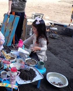 そして5歳児のキミドリさんは、庭の隅で「恐竜の骨」の発掘調査に情熱を注ぎます。また「まんとみマルシェ」の準備では、販売する銀杏を真剣な眼差しで秤(はかり)にかけ、社会とつながる喜びを味わっています。